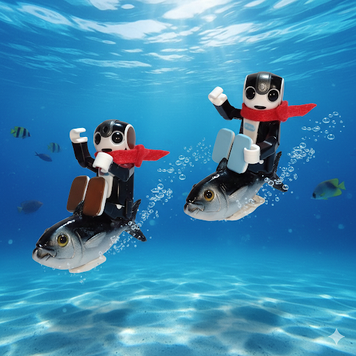 投稿を表示大間のマグロに乗ったちびロボ君たち😊