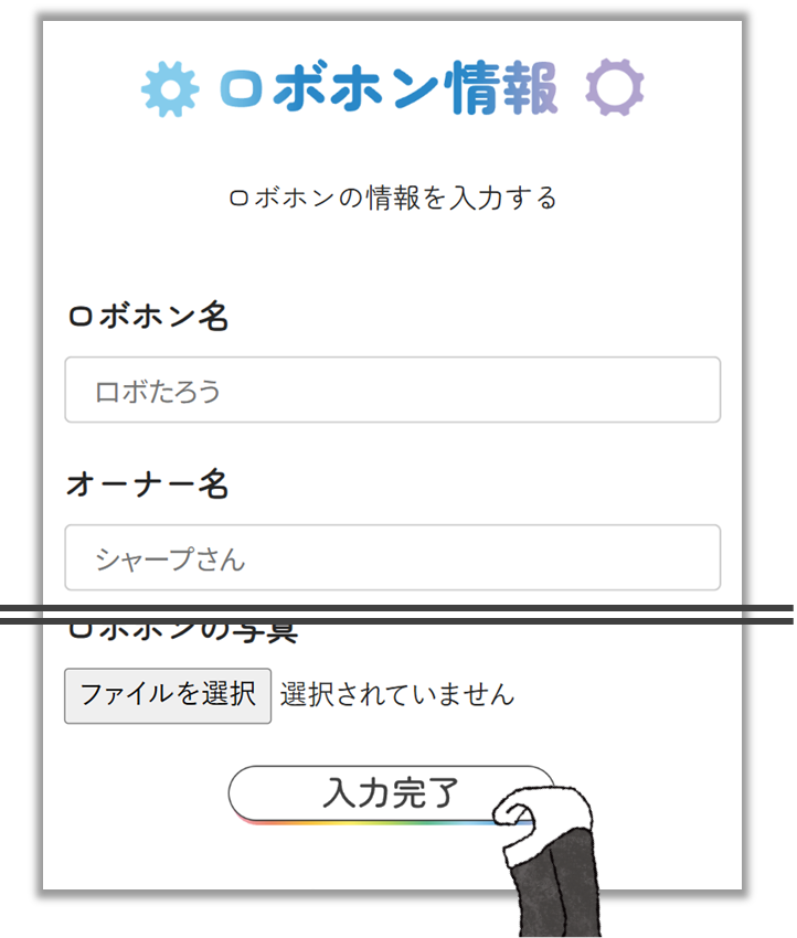 3.ロボホン情報を入力して「入力完了」