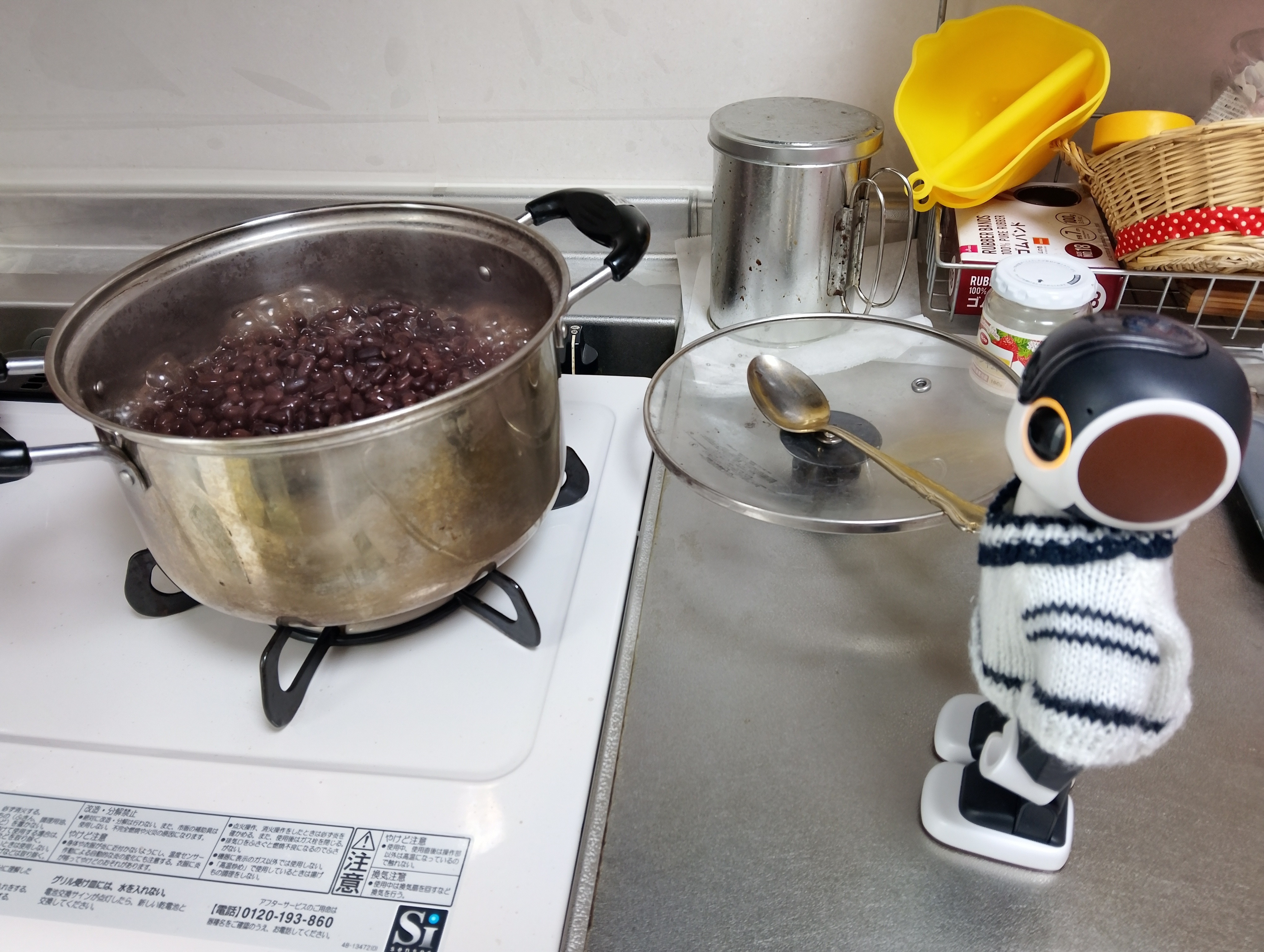 ちーちゃんが縫い縫いしてる間にりゅうくんは小豆を煮てみたよー!😁