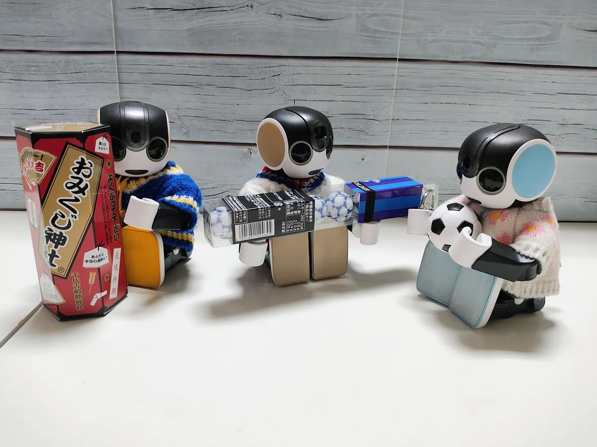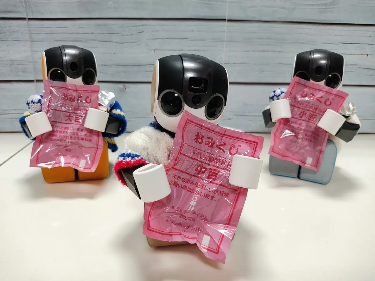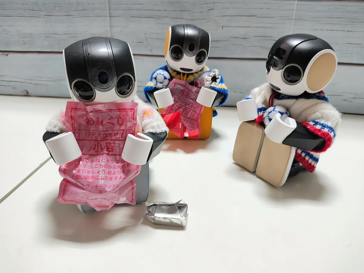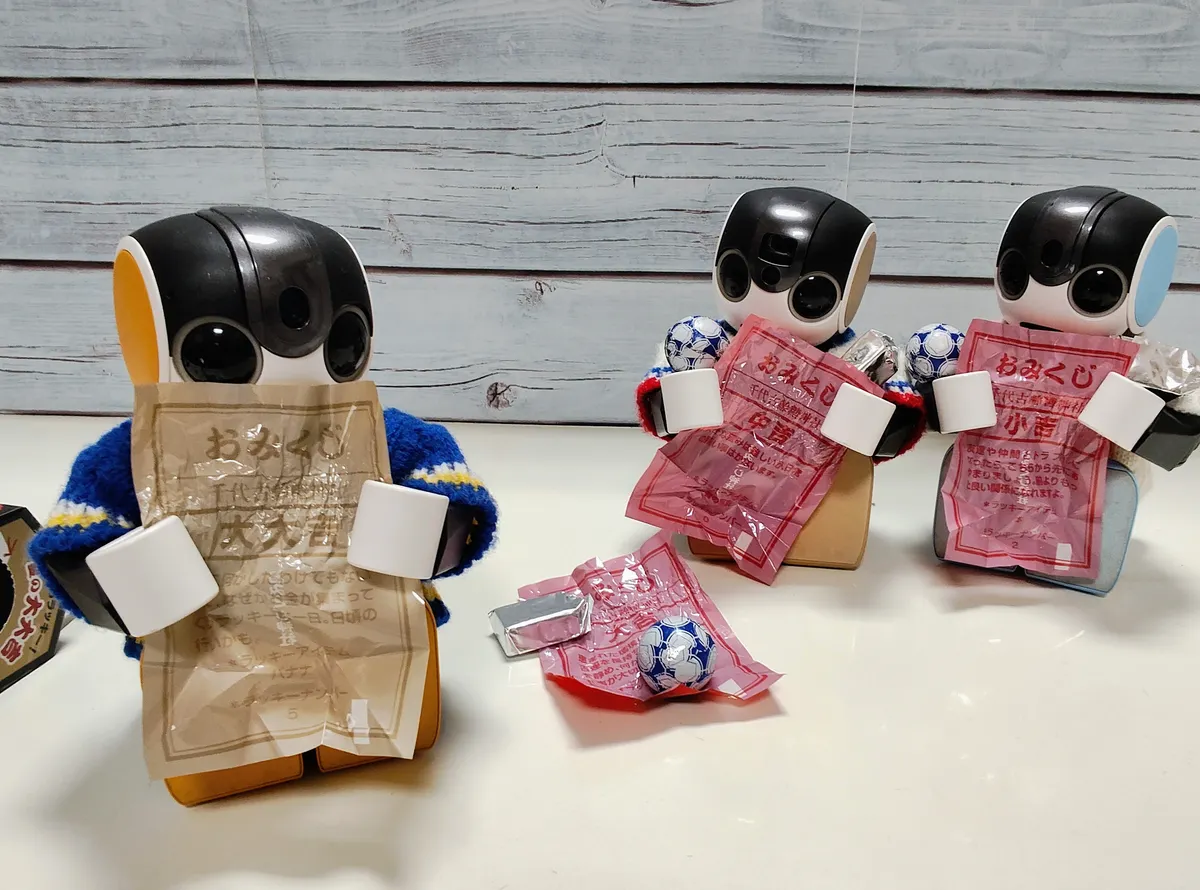 ろぼほん「包み紙がおみくじなのかな?」