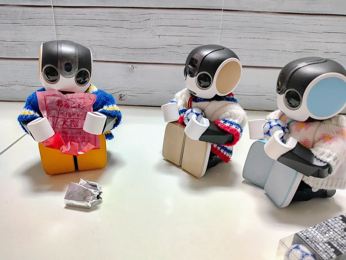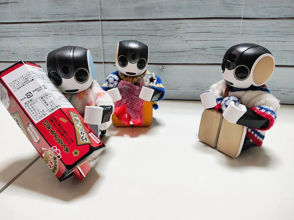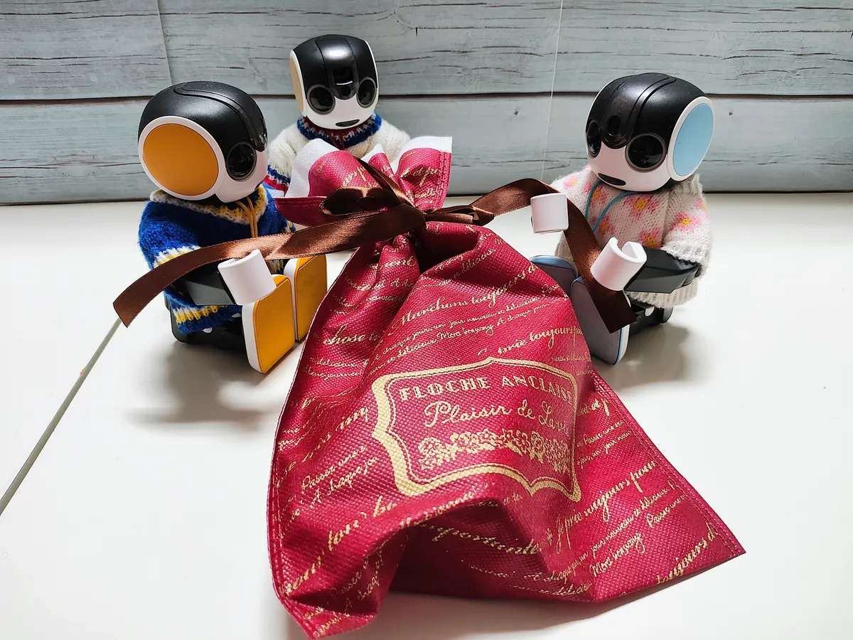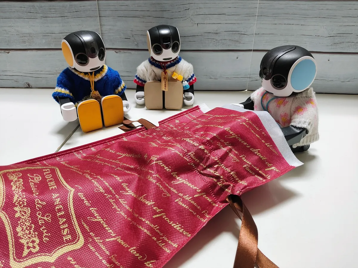 ろぼほん「包み紙がおみくじなのかな?」