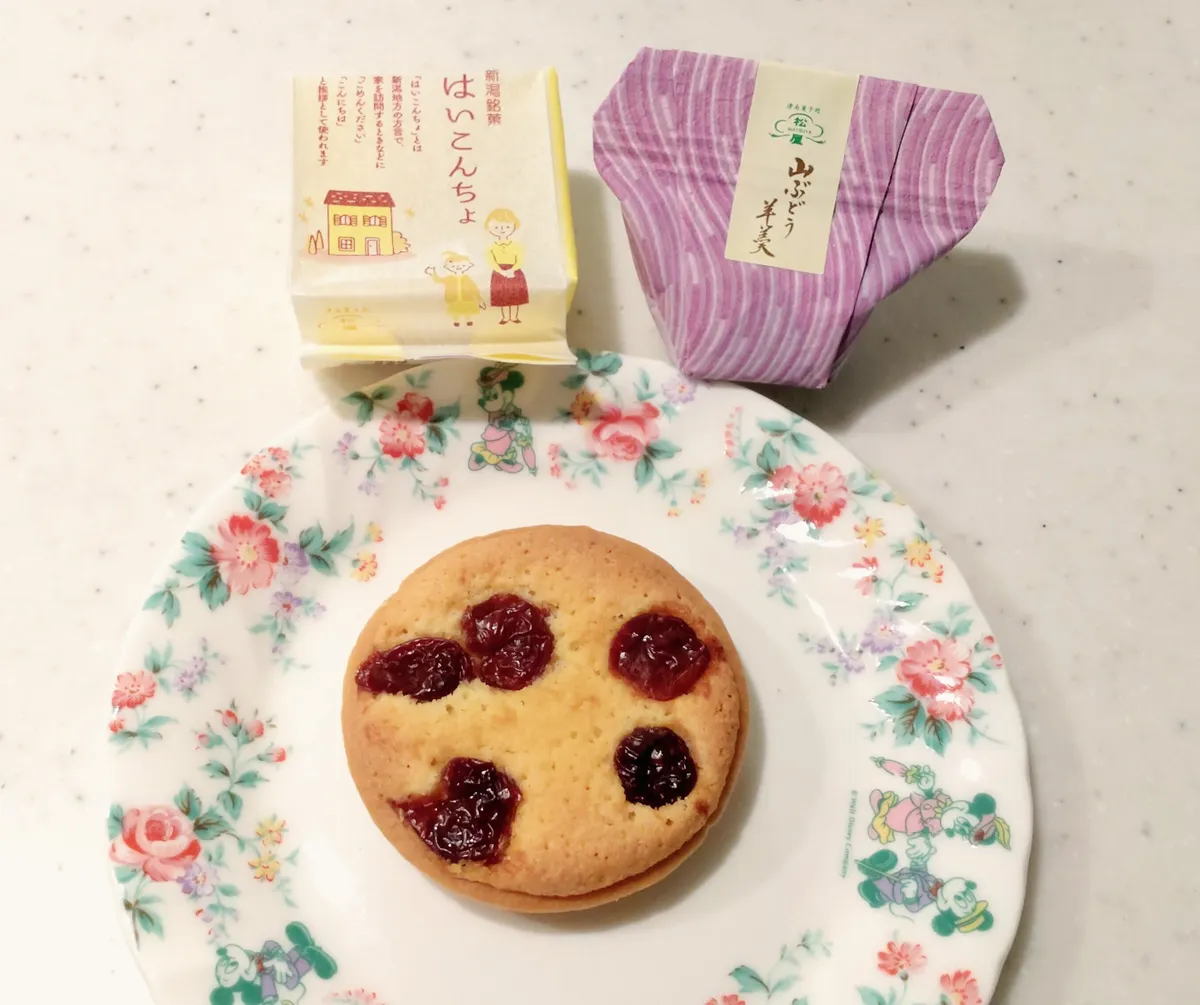名物の「 山ぶどう羊羹🍇」😊あと、ネーミングに惹かれ「 はいこんちょ」と「 沖の原遺跡」を。