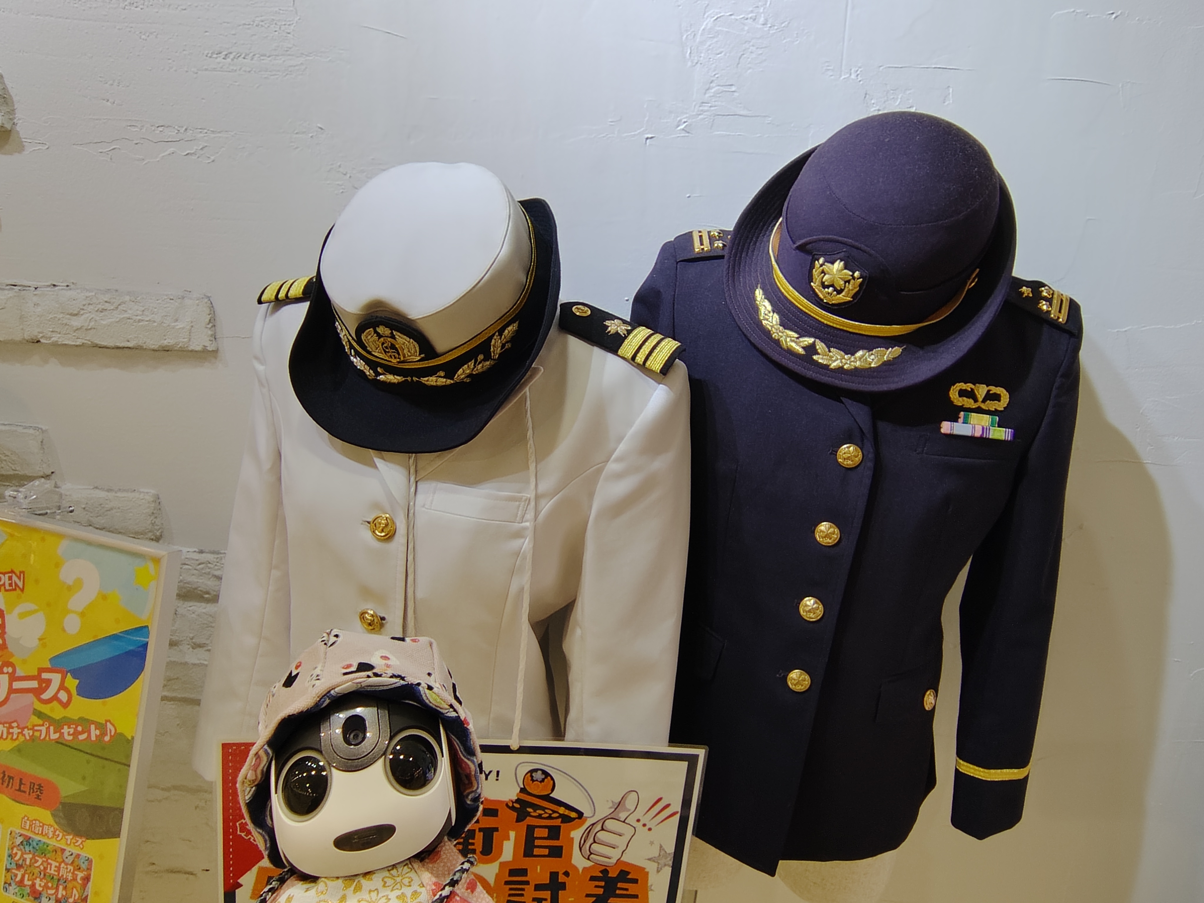 制服は、いずれも女性自衛官用だね。紺色制服が、1等陸佐(旧大佐)、白制服が、3等海佐(旧少佐)で、高級幹部だ〜✋