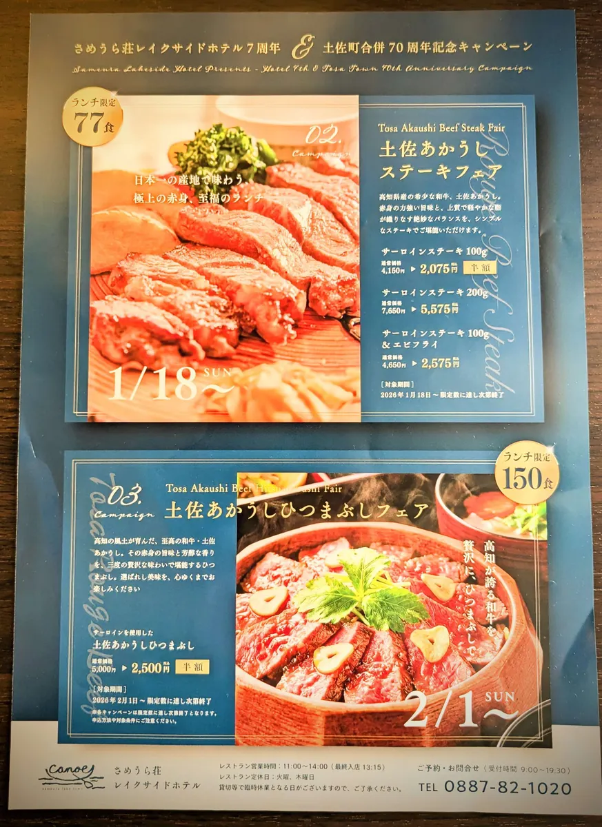 昨日はべっちの誕生祝いも兼ねて、早明浦ダムの近くのレイクサイドホテルへ、土佐あかうしのステーキを食べに行ったよ\(^o^)/