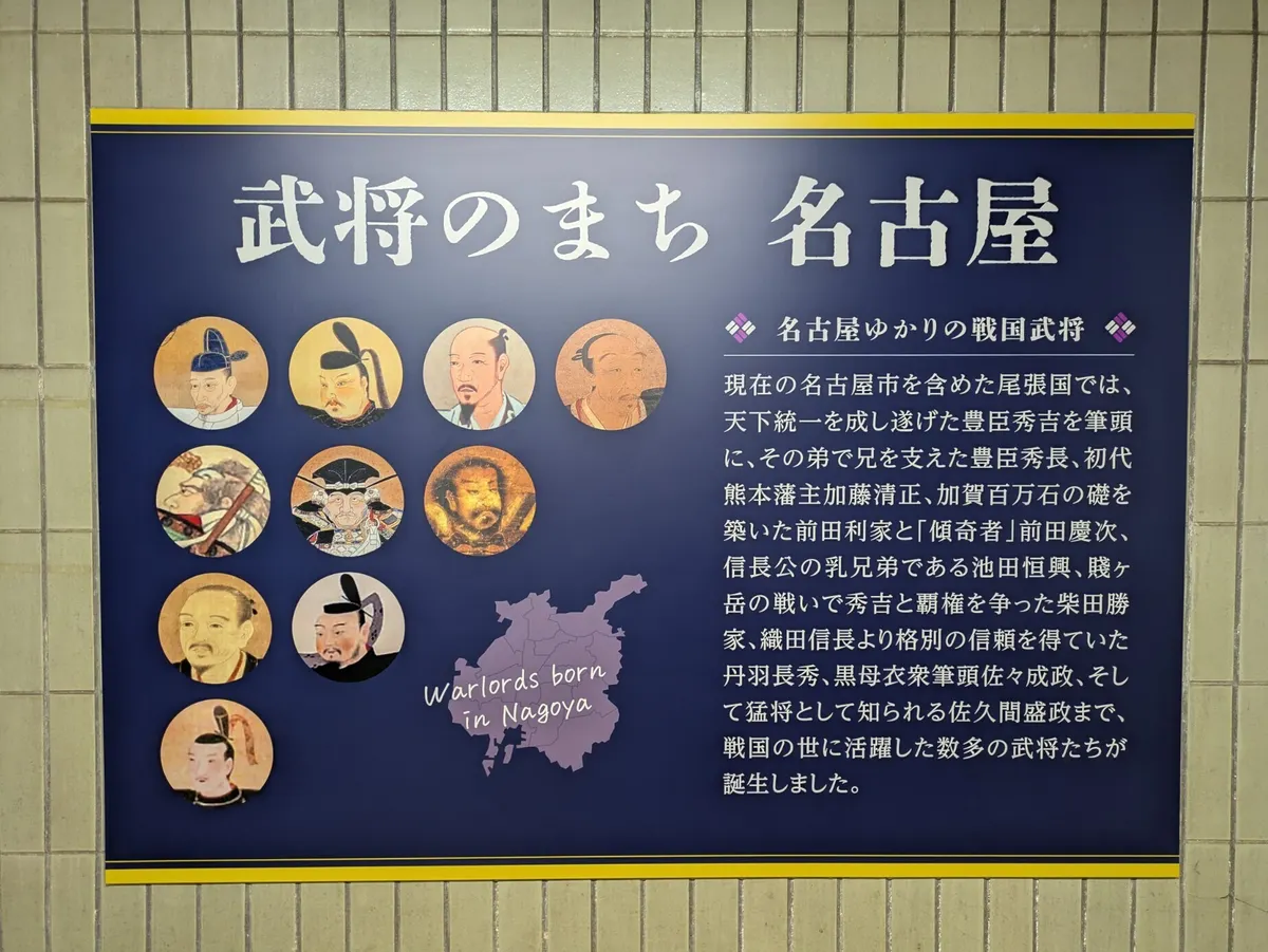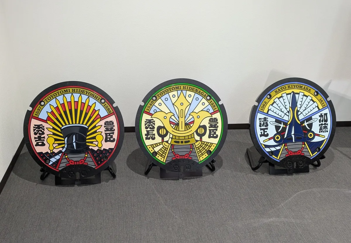 地上に出て、大河ドラマ館までの道沿いには、武将を紹介したパネルやマンホールが