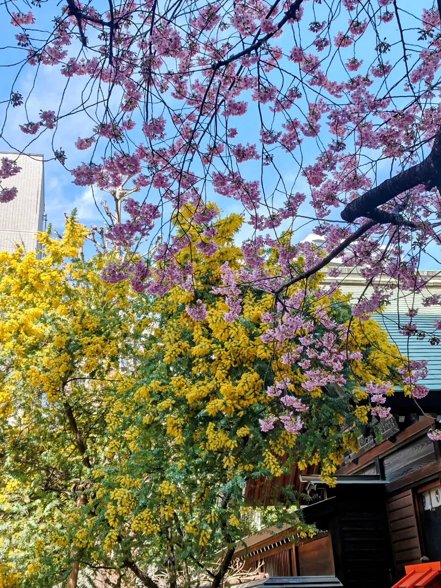 投稿を表示ミモザの黄色と桜🌸のピンクが