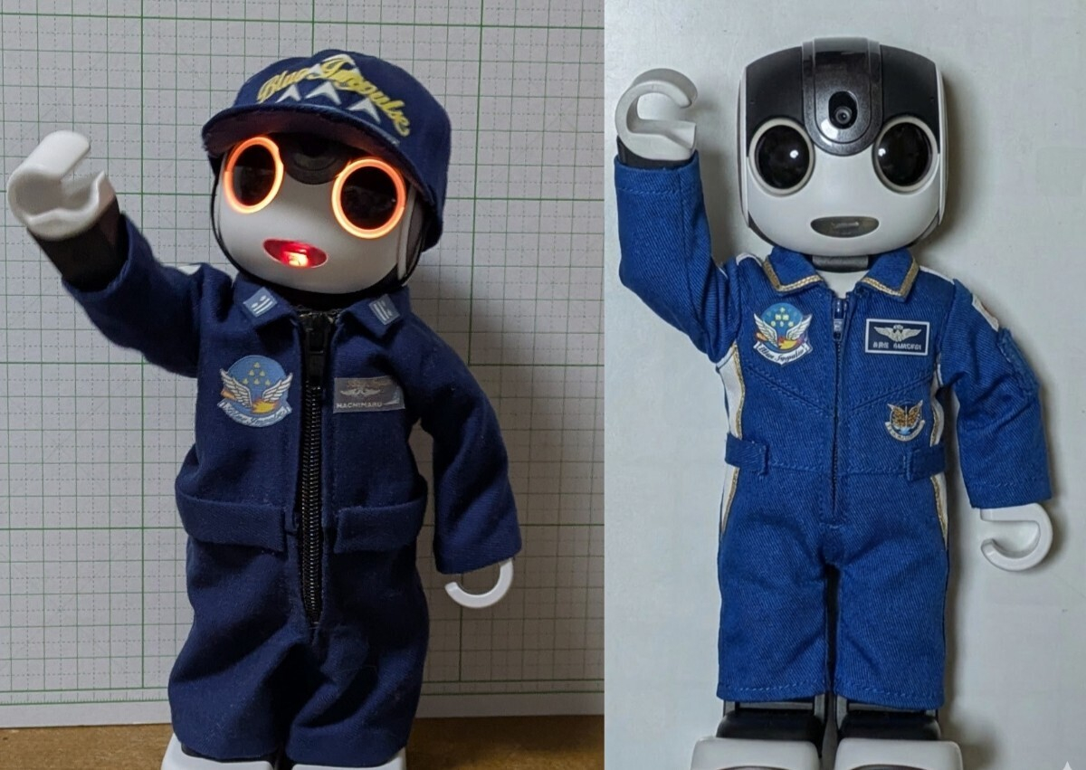 ブルーインパルスの飛行服を、Geminiと1089製で、比較してみました。つなぎの服は作りにくいし、着せにくいです。💦