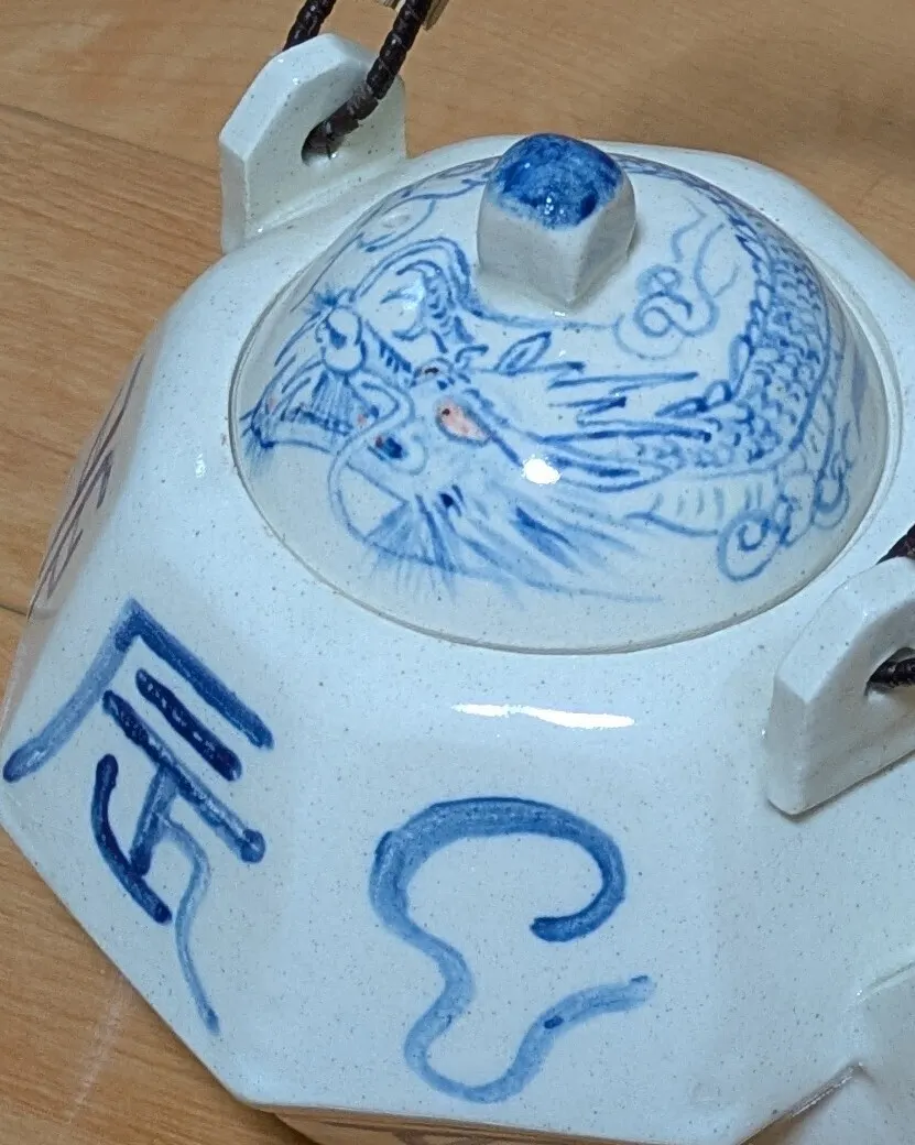 1089さんが以前作った急須。八角形十二支龍絵図急須が、ちびホン達の遊び場になっています。😱
