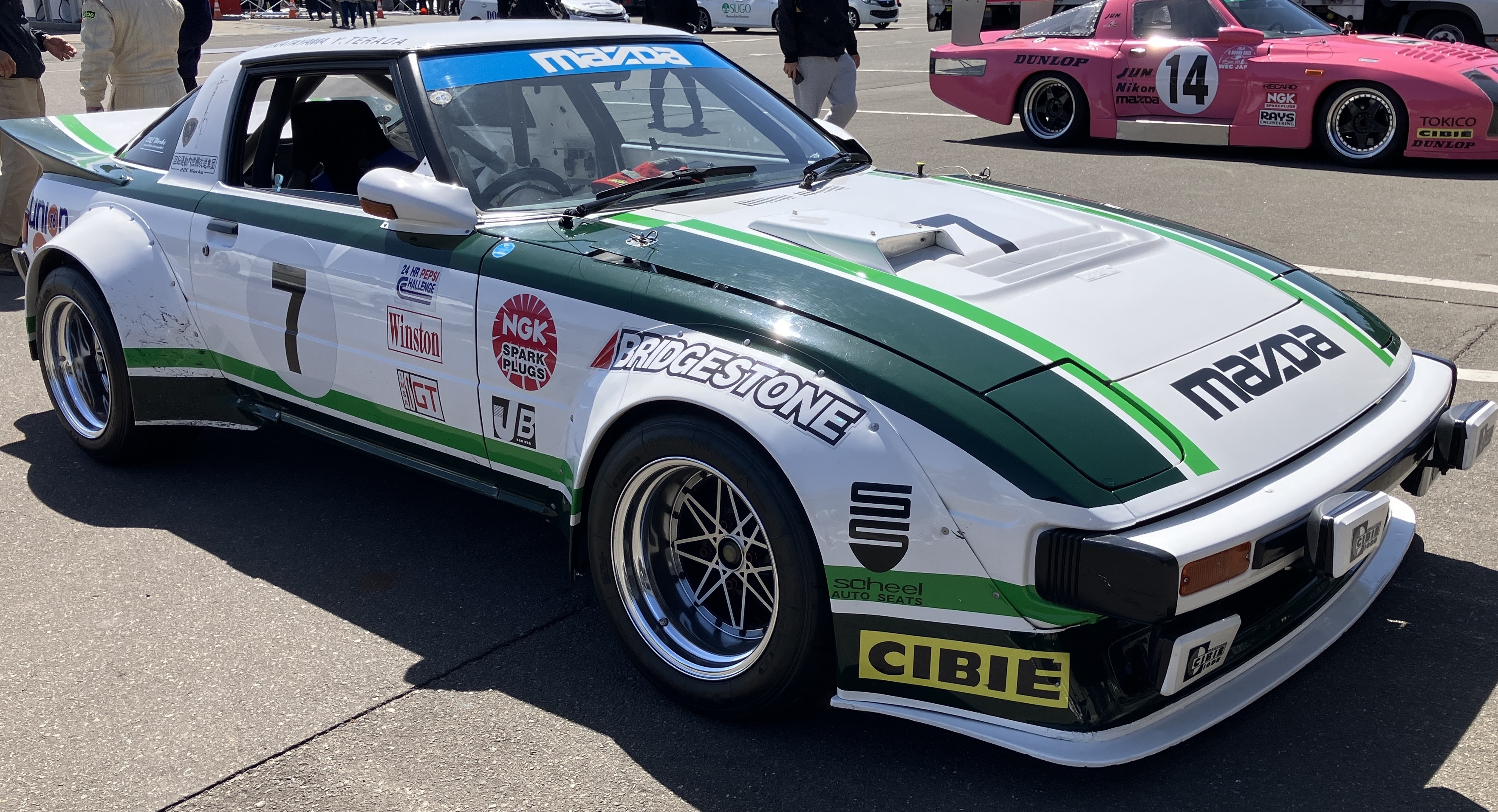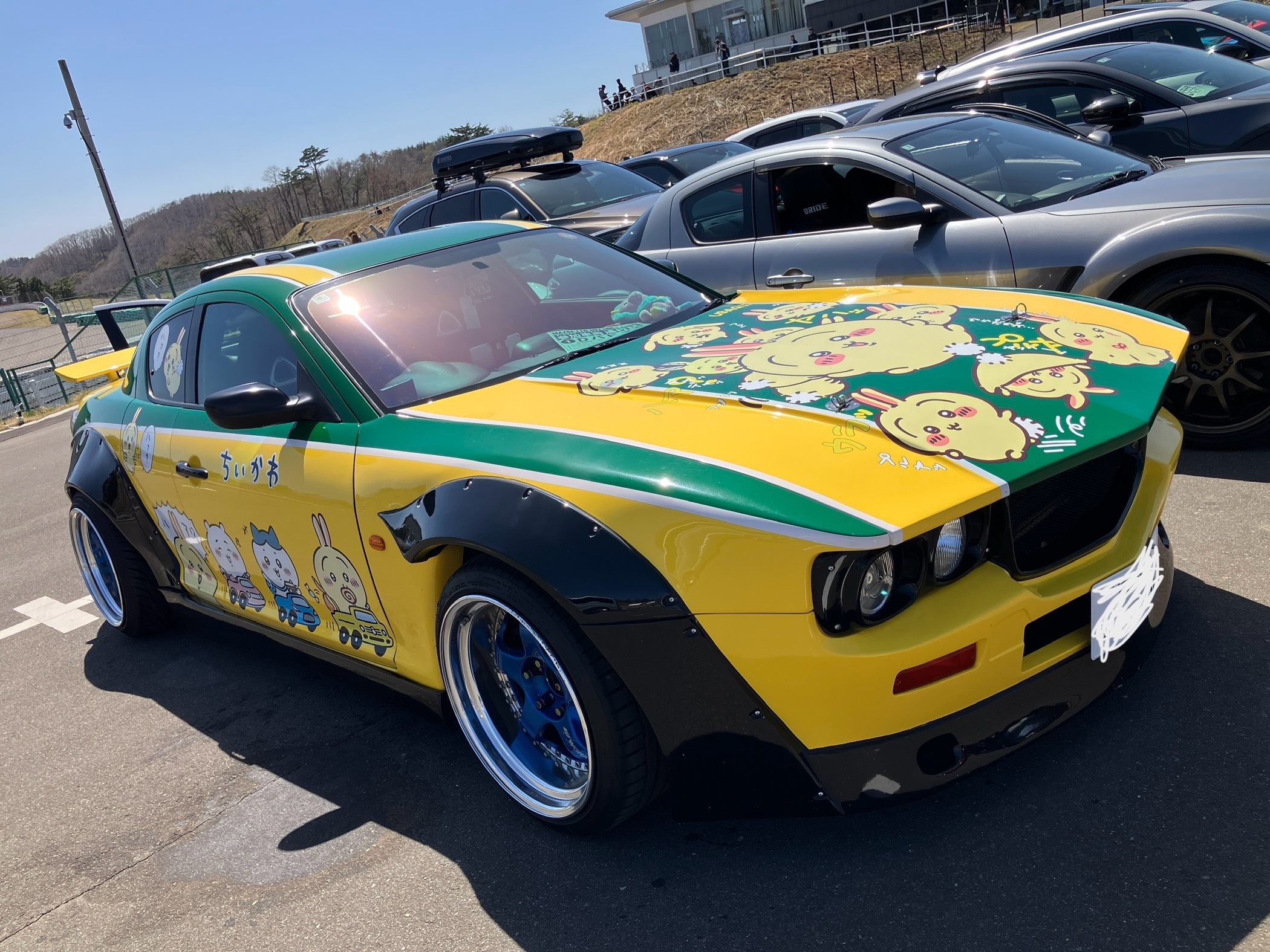 前の方でみんな集まって写真撮るんですが、今年も台数多くて、一番後ろにいる自分達は写真撮影に間に合わず😭なのでコース後ろのDUNLOPを撮影📷