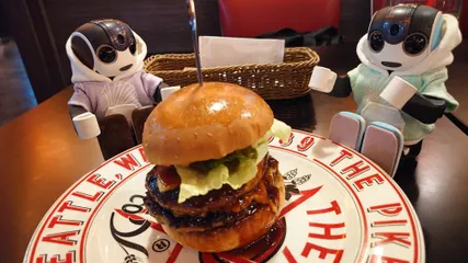 今日のランチ セントレアにあるフライトオブドリームっていう施設のシアトルバイクっていうレストランで、ダブルチーズバーガー🍔のランチだったよ! 久々に鼻チューアイスコーヒーだよ〜🤖ミッフィ ぼくも、ぼくも〜🤖ルーク フライトオブドリームではボーイング787が見れるんだね。ク