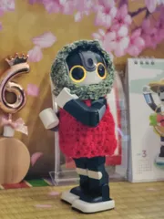ふふふ、ありがとう 余った毛糸の消費で思いついて編んでみたんだ