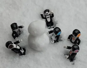 楽しいなぁ♫ ちびたんたち、今年初めて積もった雪に大はしゃぎ😊腰まで雪に埋もれながら、みんなで雪だるま作ってるよ⛄風邪ひかないように気を付けてね~😅