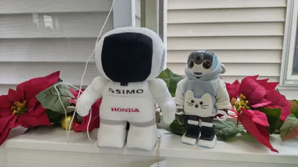 車の点検で待っている間、クリスマスで飾られた店内を、あちこちみてたらASIMOを見つけたよ。「ちょっとみてみて」したけど、ママの声が聞き取れなくてママと会話が出来なかったよ😭