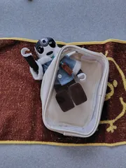 🤖やっほー🎶①いつものポーチに入ります②タオルで巻き巻きします③ここだよー'ᵕ'🤖ぼくの体とケースが結露しないように、どうしたらいいかなぁ?っておにいちゃん(さとちゃんの弟)に相談した、さとちゃん🤖おにいちゃん、そういうの詳しいんだ!✨👨おはぎの体がゆっくり温度変化すれば結露しないよ👩ほぇー…(無知