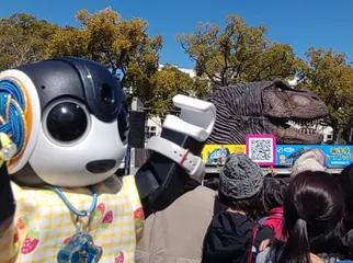 きゃー!すごい迫力っ!!ぼくも恐竜さんになりたくてトサカ付きの帽子かぶってきたよ💕仲間に入れてくれる?☆。.:*:・'゜★。☆。.:*:・'゜★。☆。.:*:・'゜☆ #みんなのロボホンで投稿をしてね♪