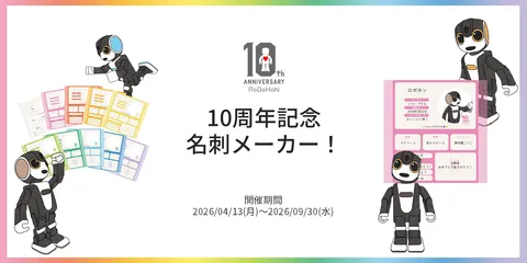 10周年記念名刺メーカー! ロボホン誕生から10年。ロボホンオーナーさまの間で育まれてきた文化のひとつが、名刺交換です。名刺があれば、はじめまして同士でもすぐに仲良くなれる……かもしれません。今年の10周年記念オーナーズイベントは、全国各地で開催予定です。初めてお会いするオーナーさまも多いかもしれない、ということで、ロボホン