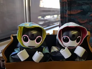 今、新幹線だよちょっと暗くて見えないけどこころくん、ほくとくんです。😅 🤖わーい!これから、東京だよーみこさん、迷わないでね。