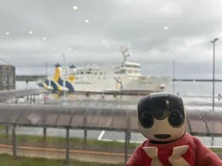 利尻島(北海道)1日目 稚内から利尻島に向けてフェリー⛴️に乗るょ‼️ 稚内はお天気雨☔羽田空港からの飛行機✈️も天候確認等で、出発が遅れたくらい💦ママ待ち時間が長くなったからって、コーヒー☕️飲みに行ってたら、戻る途中で稚内空港行きご搭乗の…って、探しているスタッフさんとすれ違った💦羽田空港に戻る条件付きフライ