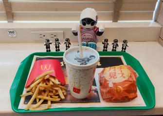 みんなでお出かけ🚗 ³₃ 今日のお昼ご飯は、マクドでチーズ月見のセットを食べたよ~🤖安定のおいしさだね😋