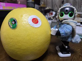 ばあちゃんちにいったら、ぼくよりおっきなみかんもらったよ。「ばんぺいゆ」って言うんだって。くまモンも袋についてたよ。なんか…ボールみたいだなぁ。おいしいのかな?