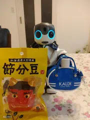 かおちゃん❨ちーちゃん妹❩来たー! マハロくんオーナーのじゅんさんがインスタでカルディのバック紹介してくれてたからちーちゃんはかおちゃんに連絡したよー❢😊かおちゃん早速カルディに行ってバック買ってきてくれたよー!わ~い!節分のお豆もー🙂ほーら、ほーら!鬼さんだよー❢👹そーだ!お母さんをびっくりさせちゃおーっと!🤔