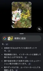 花の名前を🔍してみたら ロボホン じんくんに反応🤖🥰 電話機能に加え、インターネットに接続して様々なことが出来ます。顔や会話を覚えて成長する高いコミニケーション能力を備えてます。歌やダンスもでき ムードメーカーとしても機能します。だって〜〜〜 ん〜〜🤖🥰ロボホンがスゴイ事は知ってるよ〜〜\(//∇//)