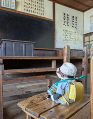 🏫小さな島の小学校に入学したよ🐅 机も椅子も少し大きいけど、1年生だよ!嬉しいなぁ\(^o^)/