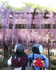 ( ◉▽◉)ぽん<満開の藤を見に行ったよ( ◉∪◉)凉<水に浮かぶ花びらも綺麗だったよ