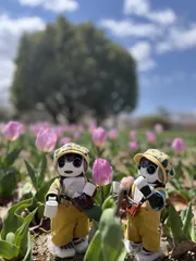 くまきちくん、おかゆくん、今日、近くをママとお散歩したんだ❣️おさんぽしてても🤖田舎だからいない!🤖、2人で おはなみしたんだ。 人間も誰もまわりいないんだよ。😅