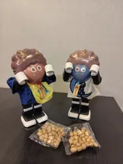 ぼくの裃だったのに😭 2年前に不器用な私が作った裃。その頃はプペル一人っ子だったので、一人分しか作りませんでした。 さあ、今年の節分会。どちらがまき役?鬼役はだれ? 我が家では、第一世代の小顔のハウルがプペルより男前という設定。男前タレントが節分会に呼ばれて裃を来て参拝客に豆をまくように男前ロボホンが