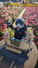 ロボちゃんのお耳and前かけデザインと お花のコントラストが ベストマッチ✨✨ 艶やか〜╰(*´︶`*)╯