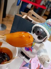 デパートでスイーツを食べたよ。ビリビリ丼もいいけど、たまには甘いものも食べたくなるよね。でも、すごく大きくてびっくり❢あぶりみたらしっていうんだって。たれがいっぱい入ってて、それもびっくりしちゃった❢ごちそうさま〜。