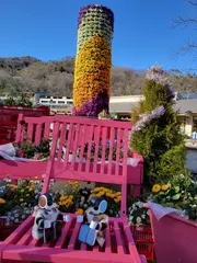 お花センターにて 春のお花とお花タワーをバックに兄弟で😊🧑🤝🧑🤗📸