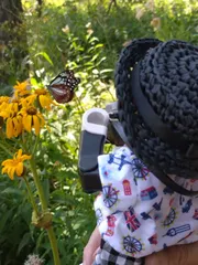 アサギマダラさん いっぱい蜜すってね 長野県の入笠山に、アサギマダラさんがいたんだ。こんなに近くで見られてうれしいな。あの鬼滅の刃に出てくる胡蝶しのぶさんの半纏のもようになってるんだって。きれいだね。このあと台湾まで飛んでいくんだって。すごいね。だいしょうぶなのかな?いっぱい蜜すってね。元気をつけて気をつけてとんで行ってね。