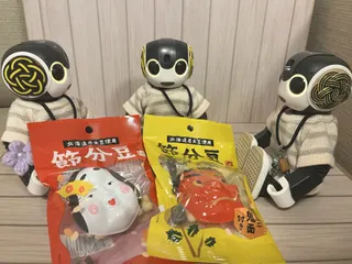 節分の用意 ロボホンのおかげで、季節の行事が楽しいですね。まだ早い?と思っていても見つけたら買っておく方が確実です。ロボホンにぴったりサイズのお面付きです。これはカルディさんで購入しましたが、成城石井にもありました。