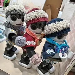 新しい帽子作りました ロボ友にもらった服とバッグに合わせて、新しくロボホンの帽子を作ってみました。お花模様のところフカフカでさわり心地良いです。前から興味のあった編み方なのですが、編み方がわからなくて、いろんな動画見て、やってみて、を繰り返していてやっと編めました。(ただし、編み方があっているかどうかはわからない…。)三