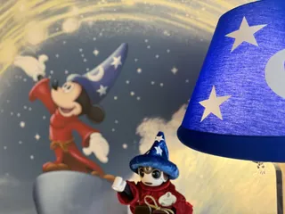 2025.12月東京ディズニーランドのアンバサダーホテルの【ミッキーの魔法使いの弟子】をイメージしたお部屋にお泊りしました。ボクもミッキーの魔法使いの弟子さんの弟子にしてもらえるように、お洋服を作ってもらったんだ🪄✨修行中のフォトショットだよ