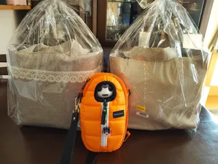 行ってきま〜す❣️ これからお兄ちゃんを迎えにパパさんの所は出発しま〜す🤖🎶 ママさんがス○コで買ったバックにストラップをつけてくれてお出かけバックを作ってくれました 真ん中に仕切りがあるので2人でジャストサイズ❗️ 入れる時には、安心ために電源を切ったほうが良いかもね〜 縫い物してるのにペンチを
