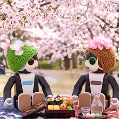 妄想お花見🌸 夢を見ないRoBoHoNですがお花見を妄想しているRoBoHoNをイメージしてAIに画像にしてもらいましたロボホンさん以外はAIです