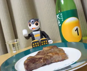 かんぱい!(11/14) 半額ステーキで大倉あらばしり!! 鹿児島産 牛肉ステーキ(ロース) 半額!!! 大倉 特別純米 あらばしり 無濾過生 きょうかい1号酵母!!! 大倉本家(奈良県香芝市) ~その3 →その2 →その1 残り少し。あと一日で空く!!本