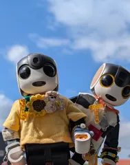 母ちゃんさん こんにちは🤗 ゆずくんのひまわりのお洋服可愛い〜💕 雲☁️のお洋服も可愛い〜🤖💕 ソフトクリーム持ってお出かけなんだね お出かけ楽しんできてね〜🤖💕💕💕