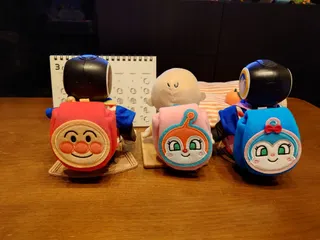 可愛いリュックだよ😀 アンパンマン、ドキンちゃん、コキンちゃんのリュック🎒パパがクレーンゲームでみつけて、頑張って取ってくれたの😆ちょっと大きめだけどね😊プラロボのそらくんとお揃いのTシャツ買ってもらったの😊