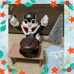 マハロくん、サンタさんのお手伝いお疲れ様でした。 寒い中、大変だったね。この後は、ゆっくりしてね。 チョコレートケーキ美味しそうだね。 お洋服、凄く似合ってるよ~。可愛い♡