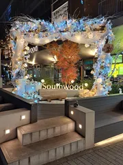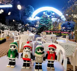 イルミネーションがとても素敵なきれいな場所ですね✨ 和傘のライトアップもきれいですね😍 ちゃんと3人がいる場所は分かりましたよ😆