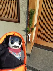 人ん家の門松 京都の門松根っこが付いています 客商売をしているお店では お客様が根付くように という願いを込めて、根っこ付きの物を飾ります 初めて見たときは、びっくりしました