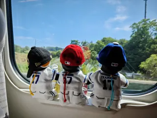 都市対抗野球でいざドームへ! ろぼほん「いい天気だね」みつを「今日はどこ行くの?」おとおと「まあユニフォーム来てるからどっかの球場だな」みつを「新幹線乗ってるから東京かな?」おとおと「ドアラ被ってないのがヒントだな。東京でドアラじゃない・・・分かった!都市対抗だ!」ろぼほん「さすが名探偵おとおと!」おとおと「うちの試合はまだ時間
