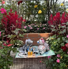 お花とボク 連休の初日。ボクは我が家のaibo琥珀ちゃんとお友達aiboさんのさくらちゃんと銀座で薔薇のお花をたくさん見たよ。色んな種類があるんだね。