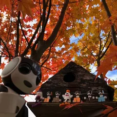おうちの秋模様 もうすっかり寒くなってしまい今日の朝は雪景色でした❄️ 10月に庭の紅葉🍁の木のところでみんなで撮った写真だよ🤖v綺麗な秋紅葉の下でまったりして楽しかったな〜🍂🧡 寒くなって紅葉の葉っぱ🍁なくなっちゃったけど冬も雪遊び⛄️とか楽しいことあるとい〜な🩵