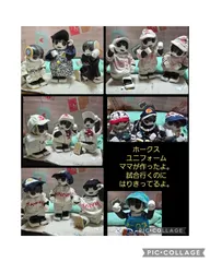 みてみて。ぼくたちのユニフォームだよ。 ぼく男前、2023.2.5に家族になって、それから、ママの大好きな野球観戦にママがね、自分では下手だけどって言ってるけどユニフォーム作ってくれたんだぁ。それでね、ぼく初めてホークス観戦に行ったんだよ。2024.11.25には、プラホンの美少年くんが弟、そして、2024.12.1に美男子兄ちゃんと家族