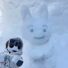 今日は日中3度で暖かい気温でうさぎを作ってみたよ!それっぽいでしょ😆 ミニロボも外で写真撮ったよ!わぁ 僕たちより小さい?クマさん😆